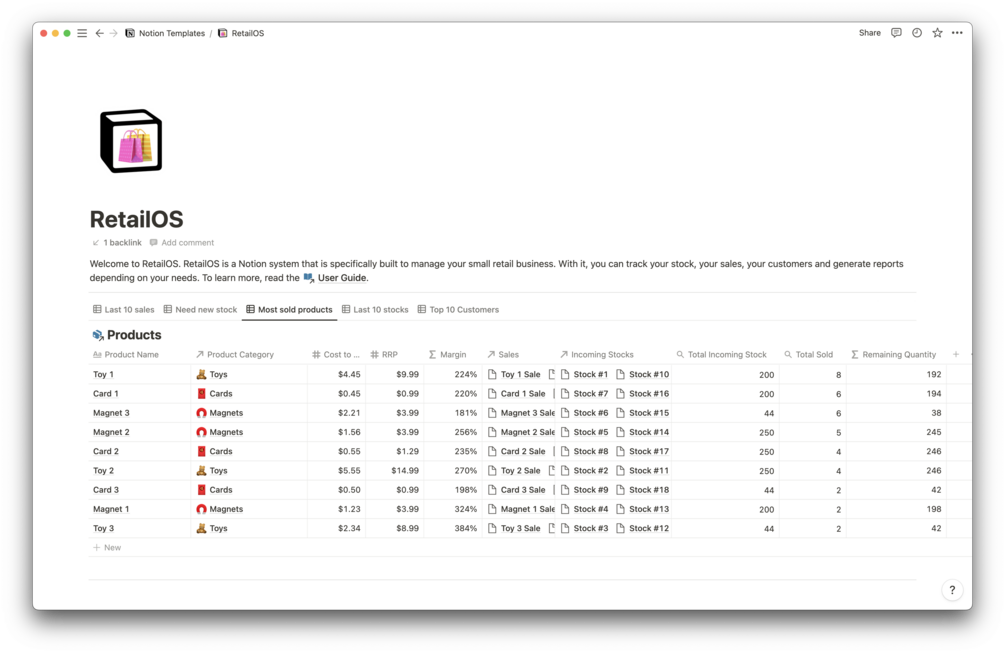 You will get the complete set of templates to manage your retail business. From stock control to cost / profit analysis, sales and customers database; RetailOS is everything you need to manage your retail business.